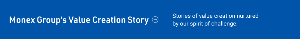 The Monex Group looks to improve corporate value by embodying our business principles and providing value to society through business activities that follow our code of conduct. We promote sustainability not just as an internal framework for creating value through business but as a common language among different stakeholders. We believe that it is important for the group to carry out our social mission: to establish a financial infrastructure that is stress-free for individuals and to provide the best financial services that meet individual needs, thereby contributing to the healthy development of capital markets.